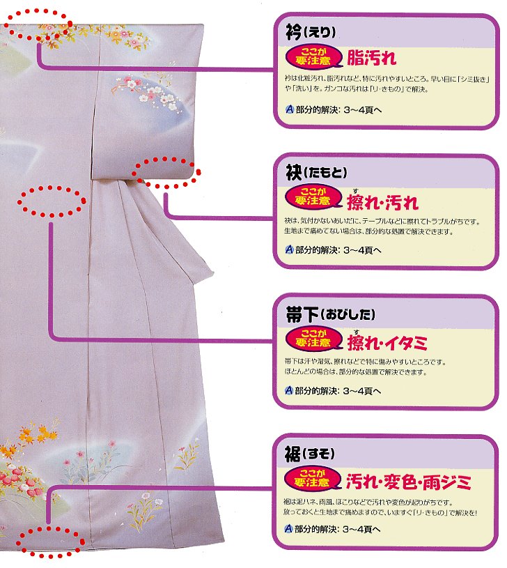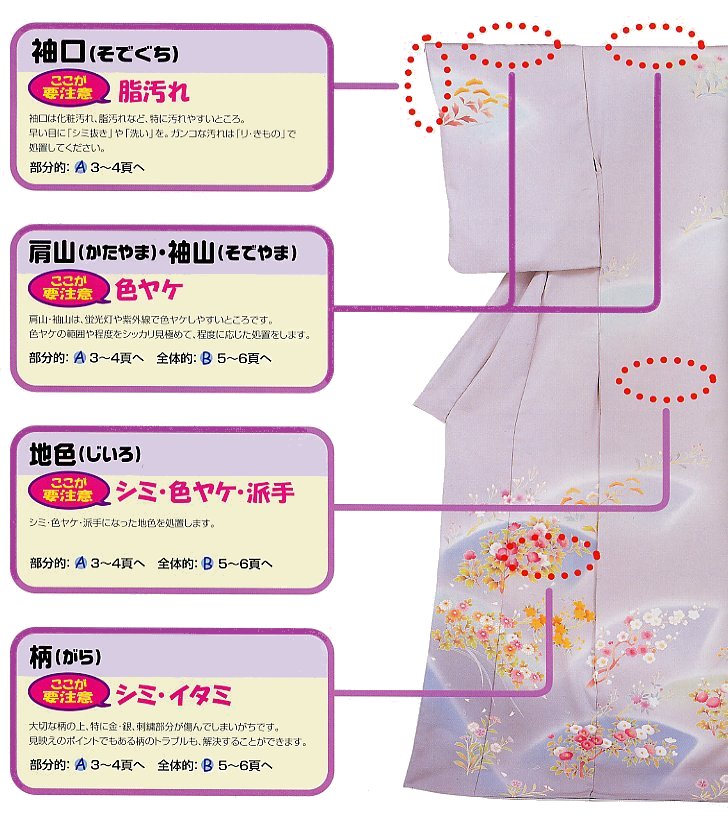少しの汚れやシミ、部分的な色ヤケやイタミを、仕立てたままで解かずに処置します。